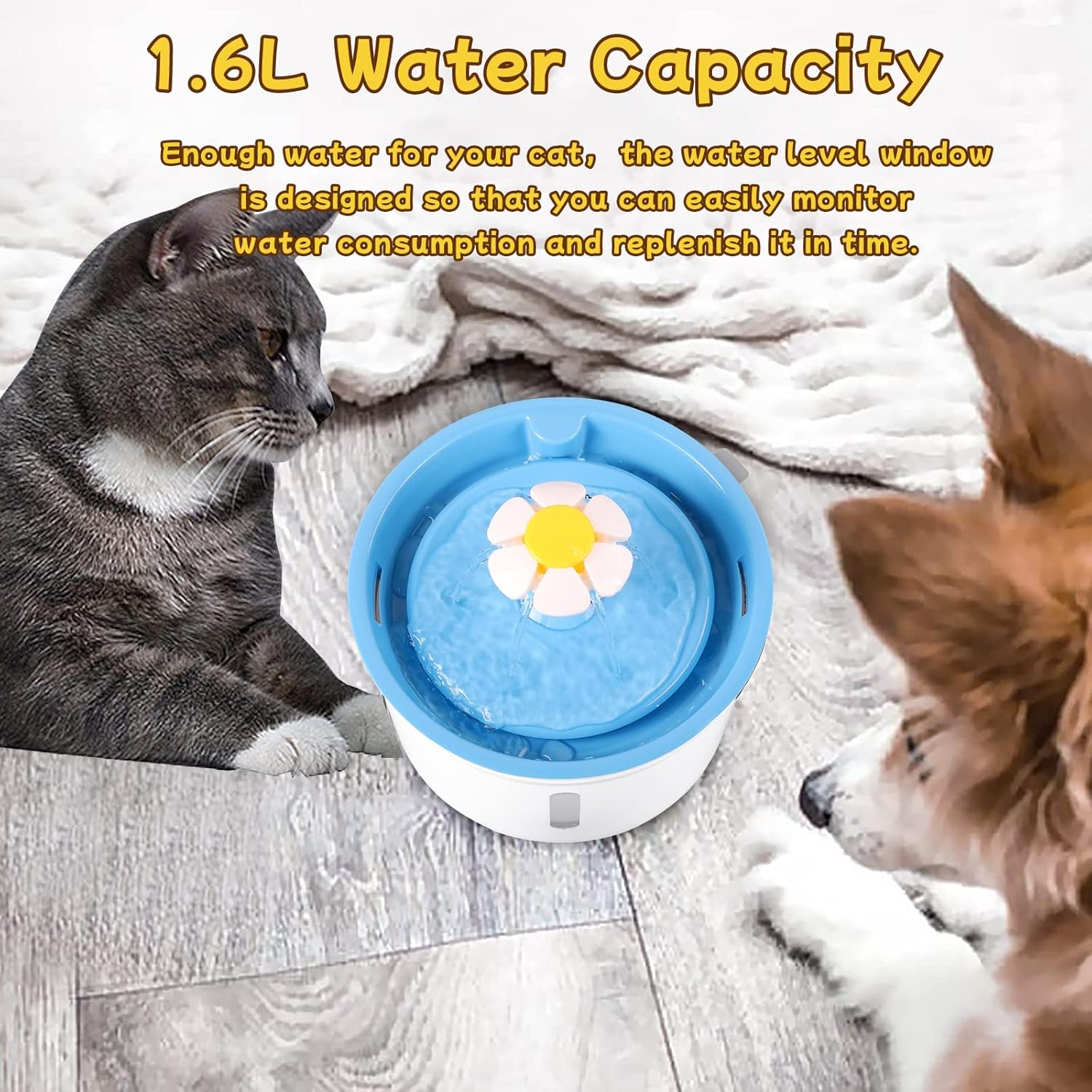 🦴 ظرفیت بزرگ ۱.۶ لیتری: با مخزن جادار، نگرانی شما بابت تمام شدن آب از بین میرود. پنجره نمایش سطح آب هم به شما کمک میکند زمان دقیق پر کردن را بدانید. همیشه خیالتان راحت است که گربهتان آب سالم در دسترس دارد.