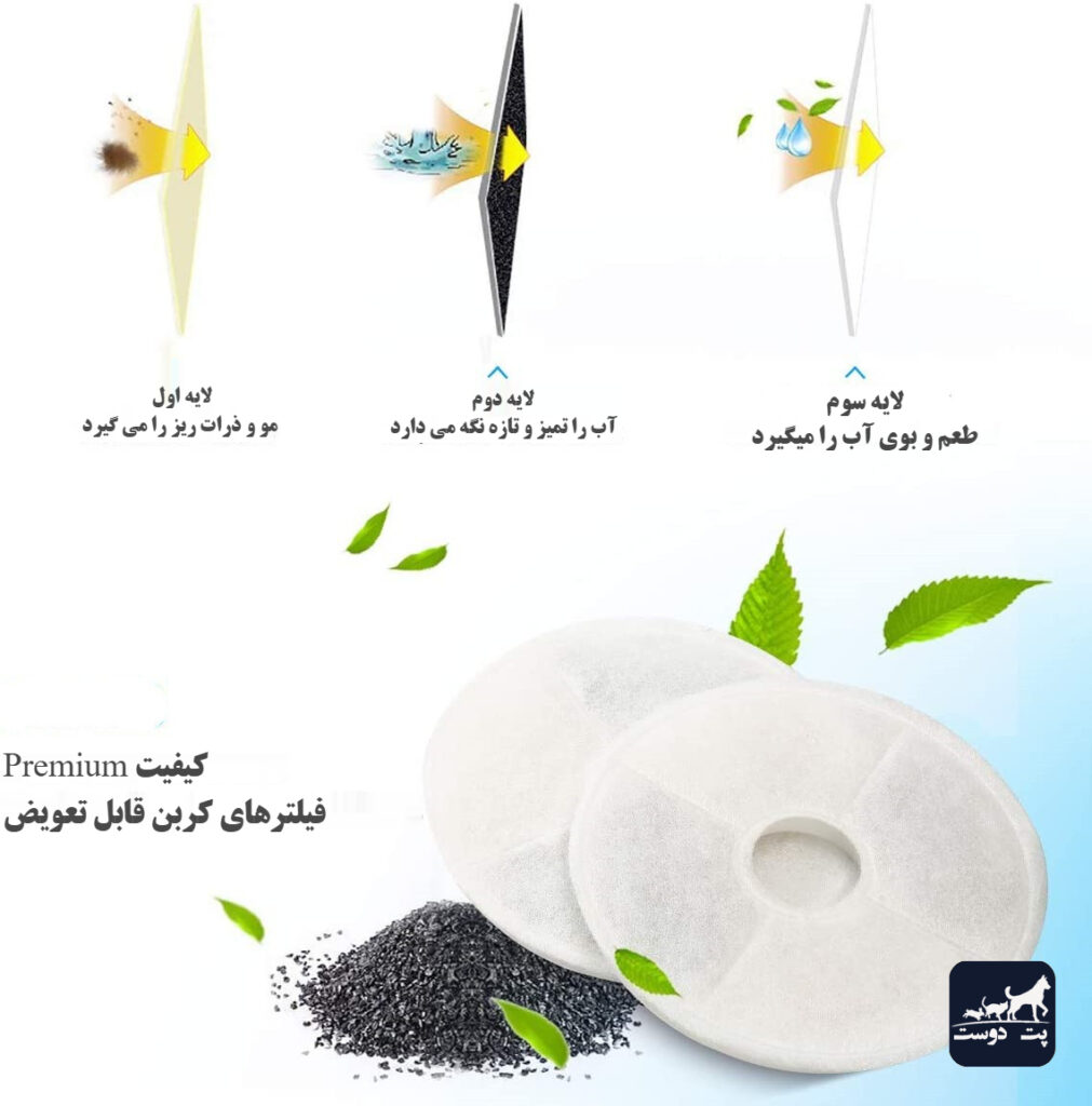 💧 تصفیه ۳ مرحلهای پیشرفته: مجهز به فیلتر سهگانه با کربن فعال پوست نارگیل و رزین تبادل یونی، برای حذف مو، ذرات غذا و ناخالصیها. نتیجه؟ همیشه آبی تمیز، تازه و باکیفیت برای دوست کوچولوی شما.