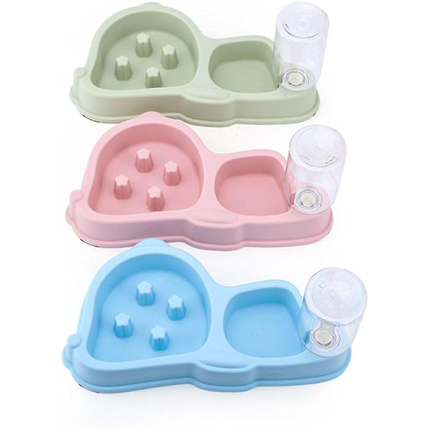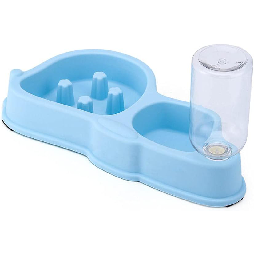 بخش آرام خور این ظرف باعث می شود سگ یا گربه غذا را آهسته تر مصرف کند. این موضوع به هضم بهتر غذا کمک می کند و خطر خفگی، نفخ و پرخوری را کاهش می دهد. بطری آب متصل نیز به صورت خودکار آب را در اختیار حیوان قرار می دهد تا همیشه به آب تازه دسترسی داشته باشد.