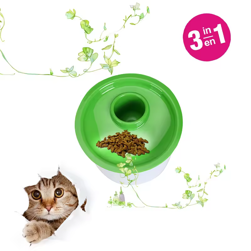 ظرف غذای مخزن دار گربه یک انتخاب هوشمندانه برای گربه هایی است که عادت به پرخوری یا خوردن سریع غذا دارند. در این طراحی خاص، گربه با وارد کردن پنجه خود به حفره ی مرکزی ظرف، مقدار کمی از غذای خشک را به سینی بالایی منتقل کرده و سپس آن را می خورد. این فرآیند، رفتار طبیعی شکار و بازی را شبیه سازی می کند و باعث می شود غذا خوردن به شکل کنترل شده، آرام و سالم انجام شود.